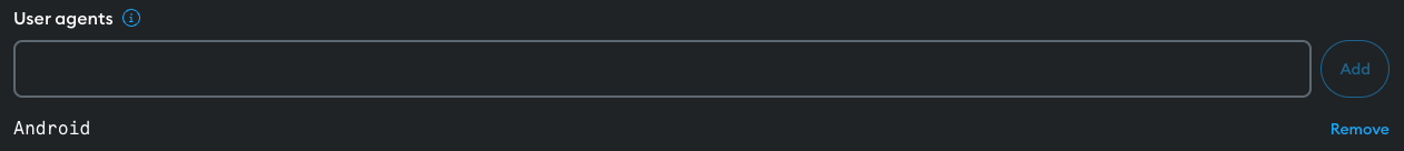 For example, to allow requests from Android phones alone, input Android into the User agent field, and select Add.